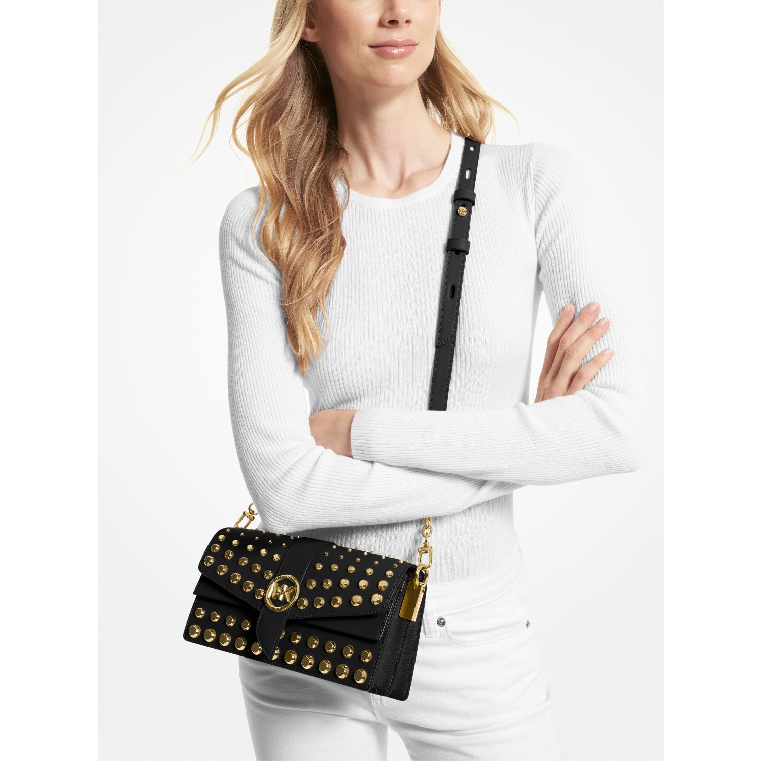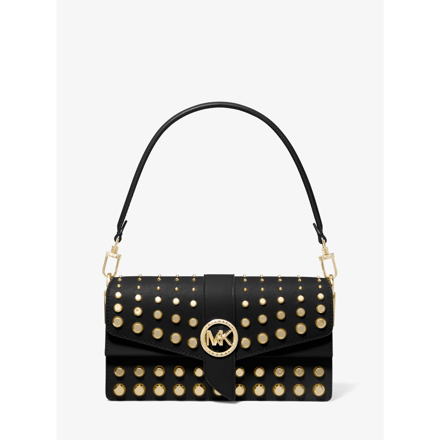 Greenwich Medium Studded Saffiano Leather Convertible Shoulder Bag
