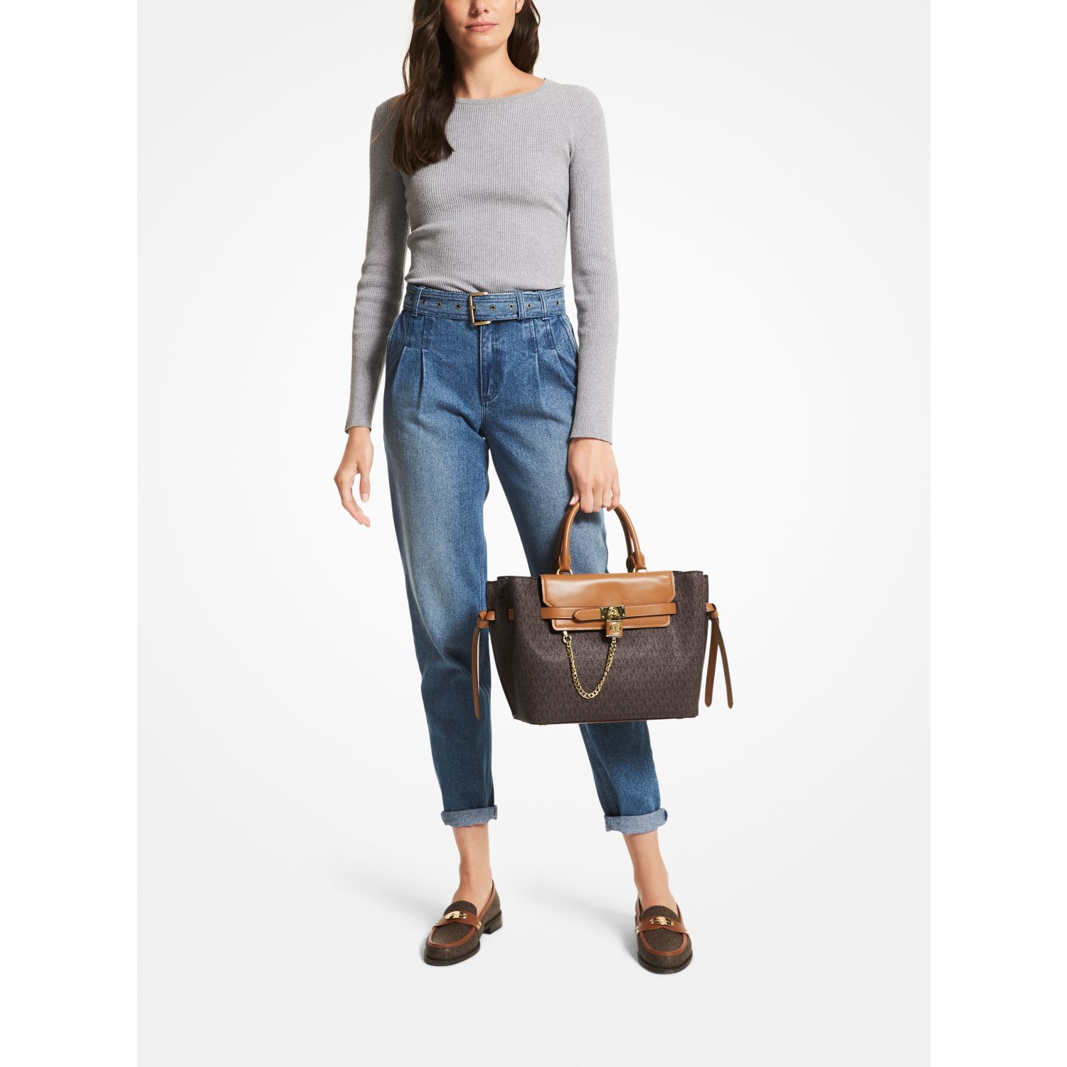 A pragmatic yet statement-making accessory, our Hamilton Legacy satchel is an instant icon. Crafted from Signature-print canvas with smooth leather, it features adjustable side gussets and a polished chain-link pendant for a luxe finish. Its compartmented interior will easily hold a laptop plus a day’s worth of essentials.