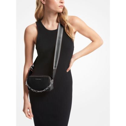 The Jet Set camera bag is a chic everyday option, crafted from pebbled leather with branded hardware. Designed with two zip compartments to keep your organized, it can accommodate your cards, cash and any other small essentials. Carry it by the chain-link strap, or over the shoulder with the crossbody strap.