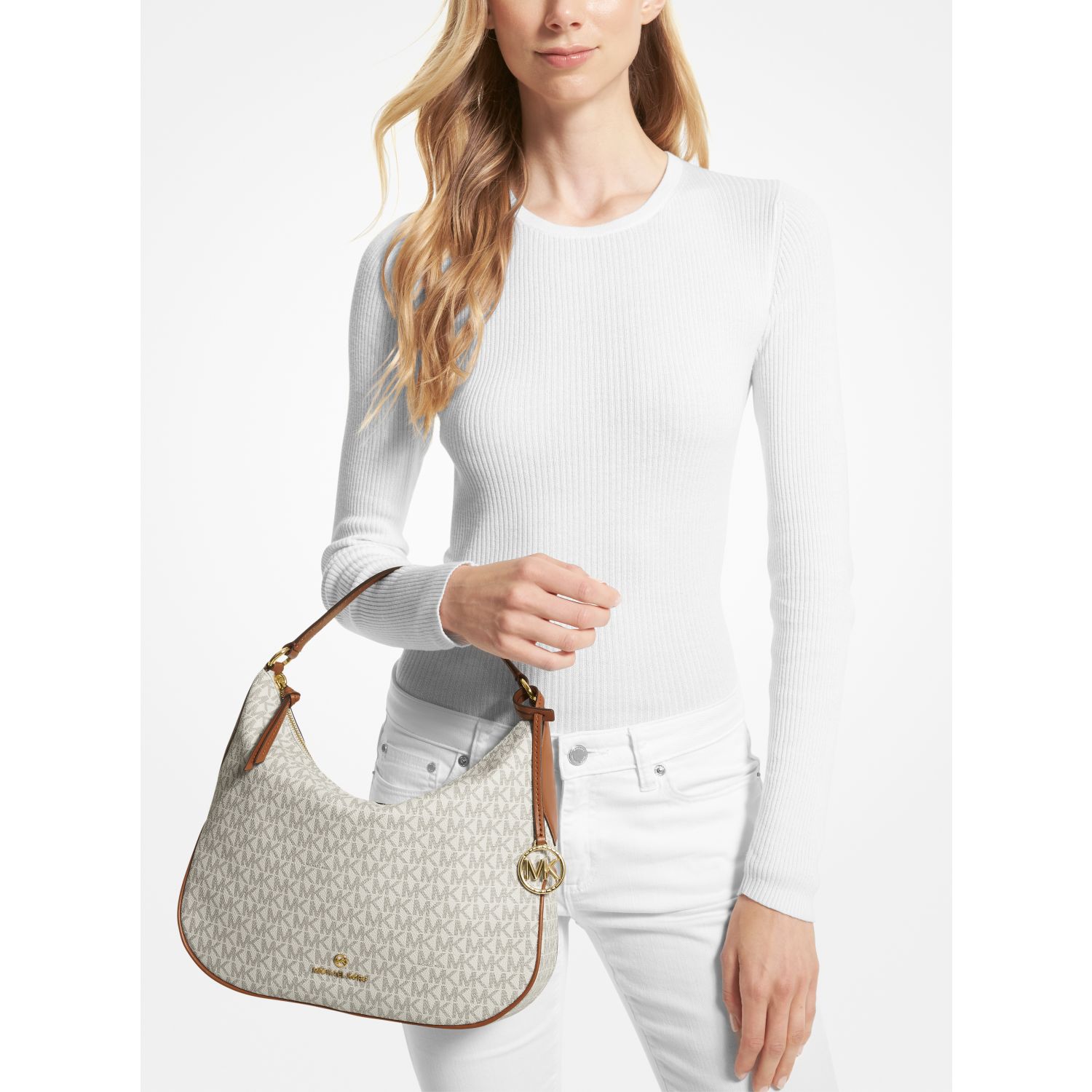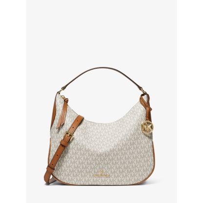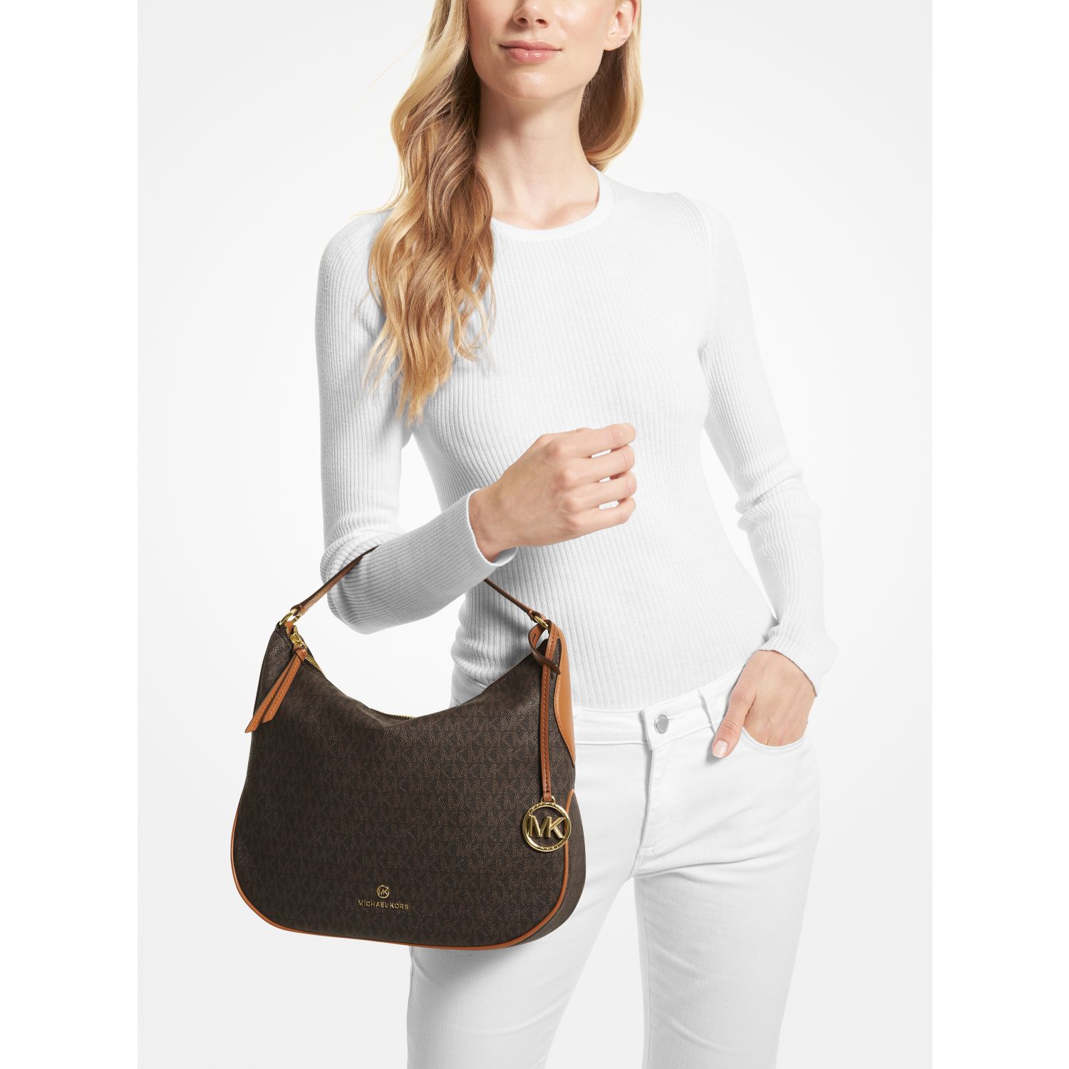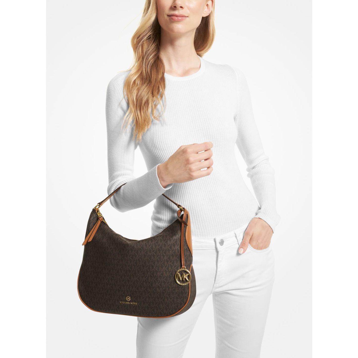 Defined by a casual-cool relaxed silhouette, the Kelsey shoulder bag lends an element of effortless glamour to myriad looks. Featuring a polished MK charm for luxe appeal, this slouchy-chic accessory is crafted from our Signature-print canvas with contrasting faux leather trim. Designed with two carrying options, we think it’s the perfect day-to-night companion.