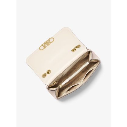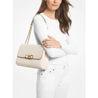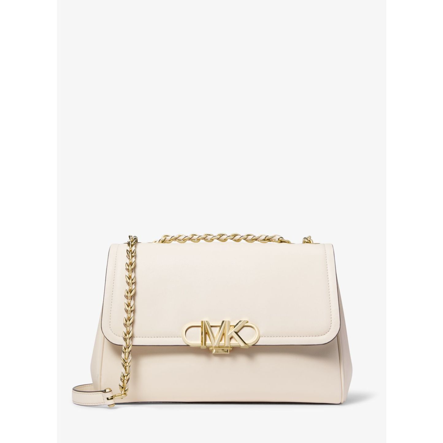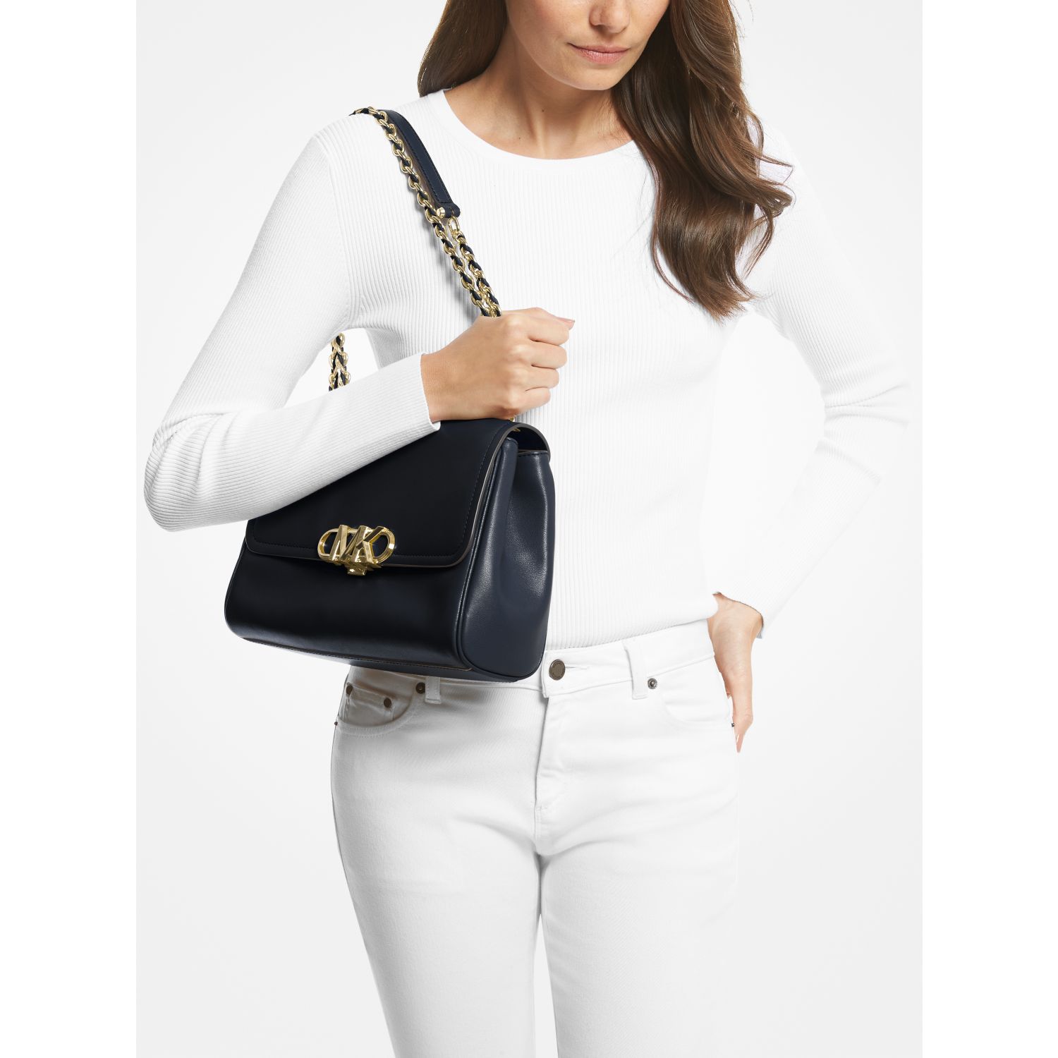 Our leather Parker bag is designed to infuse every day with a little glamour. From the sliding braided chain strap to the bold Empire hardware on the front, the details are polished and eye-catching. Inside, dedicated zip-and-slip pockets keep a day’s worth of essentials organized. Reach for it when traveling light isn’t an option.