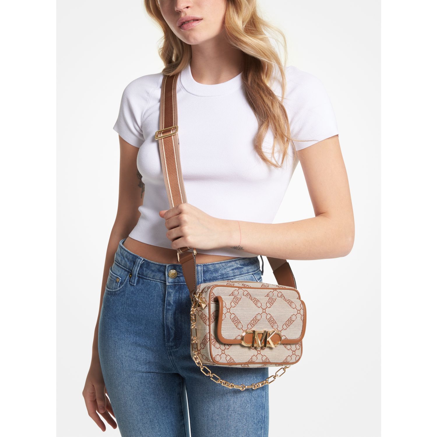 Parker Medium Empire Logo Jacquard Crossbody Bag