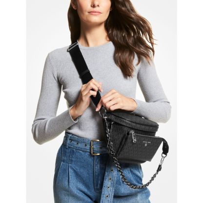 Blending uptown chic with downtown cool, the Slater sling pack combines our signature logo print with contrasting leather trim. A removable braided chain strap lends an edgy effect, while a front zip pocket offers practical storage for your necessities. We think it’s the perfect companion for a night on the town.